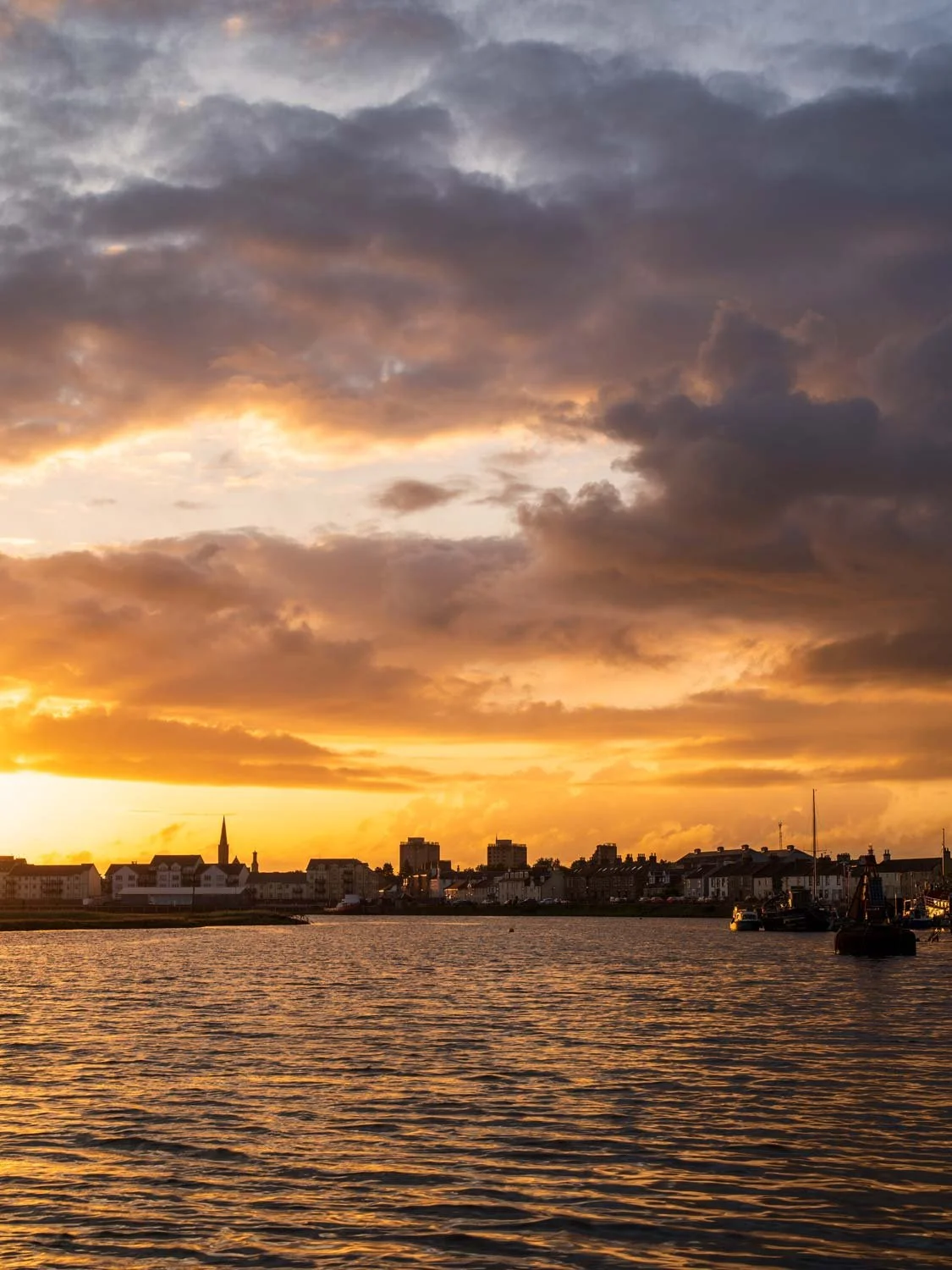 I was so close to calling it a day as I walked back towards the car. The wind was really getting up and although the drizzle had stopped it was cold and exposed. The thought of returning home to a warm cup of tea was looming large in my mind when I noticed a slight break in the clouds. The break in the clouds was drifting towards the horizon and very quickly a faint orange tinge appeared on the edge of the clouds. Just as panic was about to set in, I decided to return to a lower section of the harbourside which allowed, only just, a view eastwards towards the town and rising sun. This was where I took the dawn image so it was up to me to make it work for the sunrise as well so the pressure was definitely on. There was no time to ponder my decision as it was all about concentrating on getting the shot.