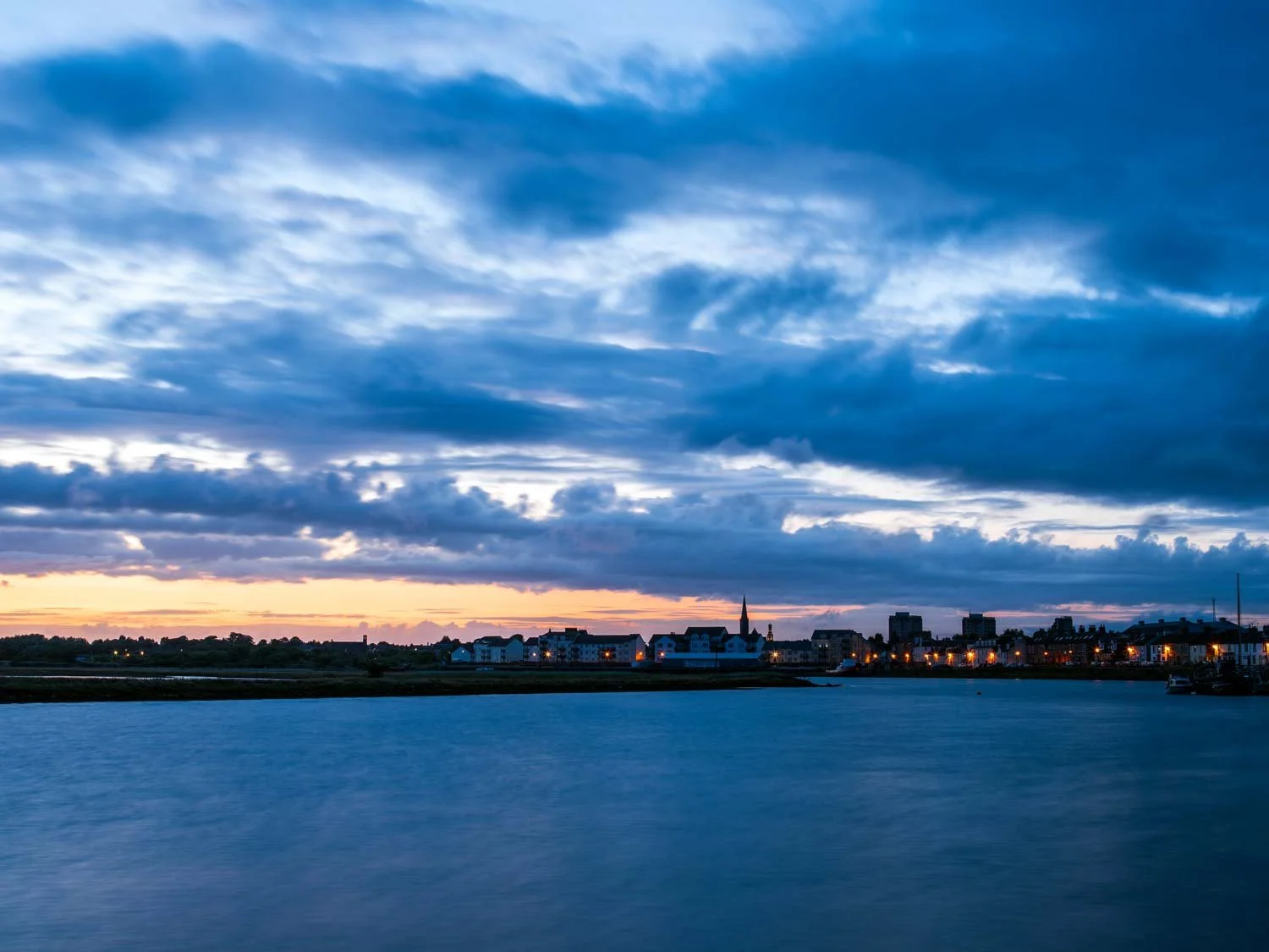 The dawn glow on the horizon wasn’t looking great as the colours were decidedly muted, cloud was also drifting in from the west and the realisation then hit me that it was going to be difficult, if not impossible, to find a really good viewpoint. Capturing a decent image, with a perfect view looking along the water towards the town, seemed a million miles away and to make matters worse it was now starting to drizzle.